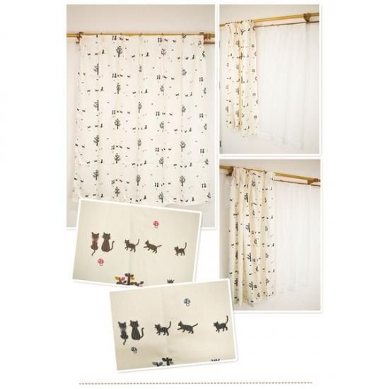 選べる アニマル柄 カーテン / 4枚組 4枚セット 100×135cm ブラウン ネコ柄 ミーケ / ミラーレースセット 洗える 九装