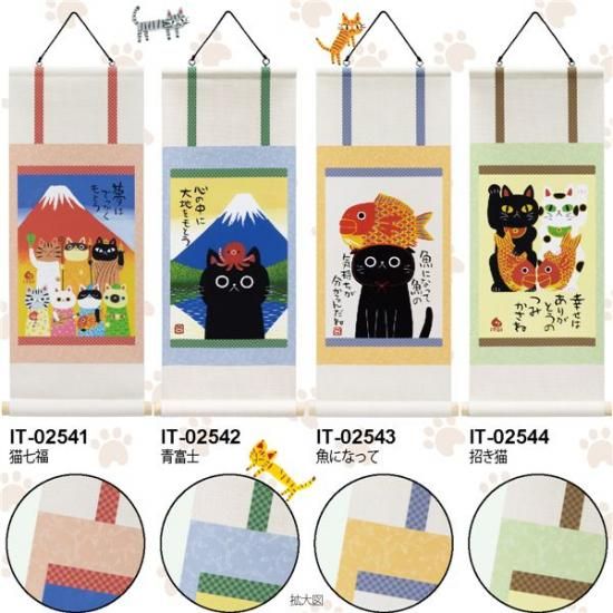 ●和風、洋風どちらのお部屋にもぴったりなモダンなミニミニ掛け軸が新登場!猫たちが幸せを呼び込みます。