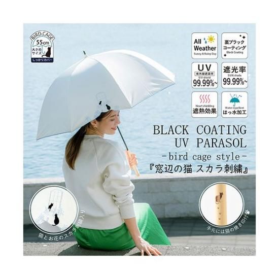 商品名:三国 MKN 遮光&遮熱 黒コーティング傘 55cm手開き 窓辺の猫 スカラ刺繍 オフホワイト S1519201