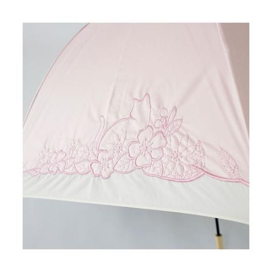 商品名:三国 MKN 遮光&遮熱 黒コーティング傘 55cm手開き 猫とお花刺繍切継ぎ ピンク S1519006
