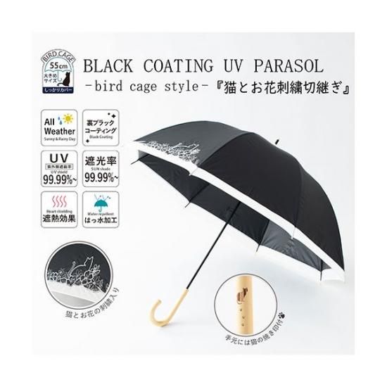 2022s/sで大人気だった黒コーティング晴雨兼用傘の「猫とお花刺繍」がリニューアルで再登場です!