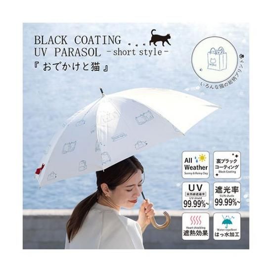 商品名:三国 MKN 遮光&遮熱 黒コーティング傘 50cm手開き おでかけと猫 ブラック S1517602