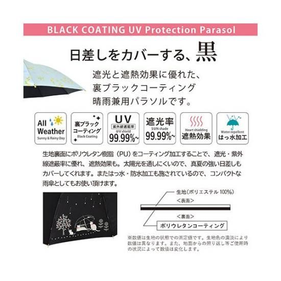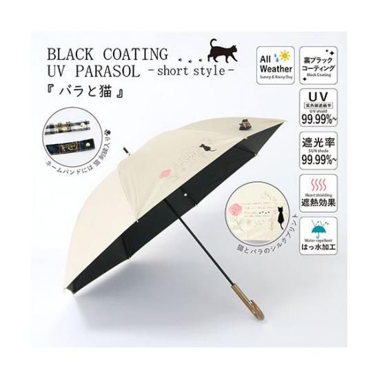 商品名:三国 MKN 遮光&遮熱 黒コーティング傘 50cm手開き バラと猫 ピンク S1517506