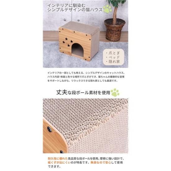 キャットハウス スペース 爪とぎ付き猫ハウス 木製 ダンボール 組立品【代引不可】