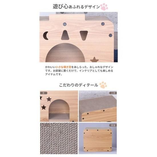 爪とぎをしたり、ベッドのようにくつろいだり、隠れ家のようにリラックスできる場所として最適です。