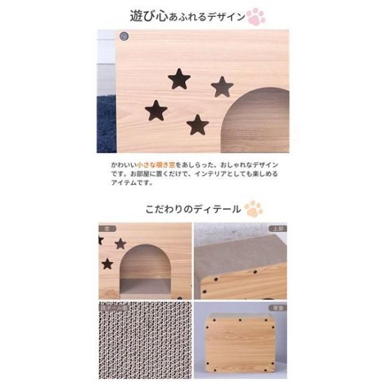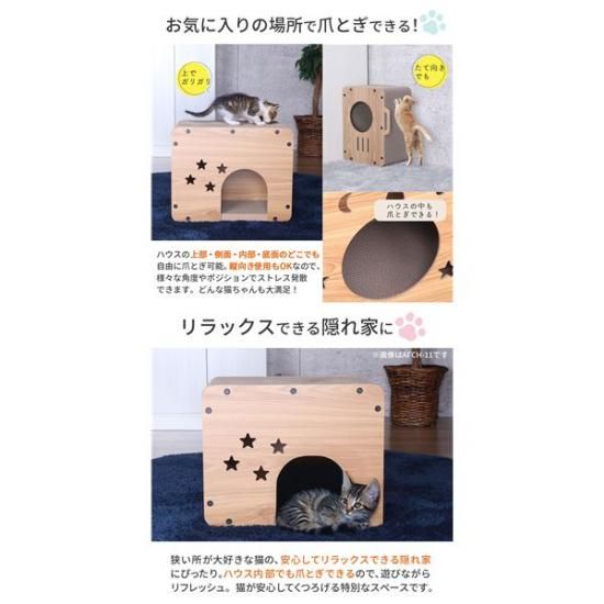 キャットハウス スター 爪とぎ付き猫ハウス 木製 ダンボール 組立品【代引不可】