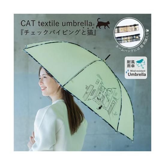 商品名:三国 MKN 60cm耐風ジャンプ傘 チェックパイピングと猫 グリーン A1112010