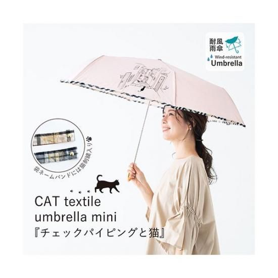 商品名:三国 MKN 55cm耐風楽ミニ傘 チェックパイピングと猫 グリーン A2114310