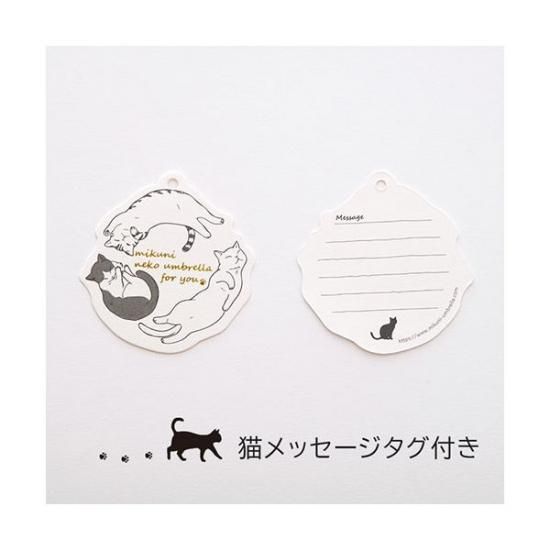 傘を留めるネームバンドにはシリーズ共通の金糸の猫刺繍&猫のあしあとボタン付きになっていて、猫好きさんにおすすめ!