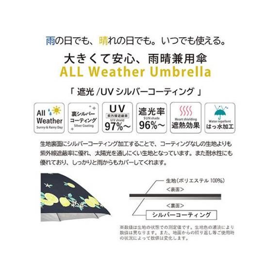 紫外線遮蔽率/遮光率に優れる(※)裏シルバーコーティング生地を使用した、全天候対応の折りたたみ傘。