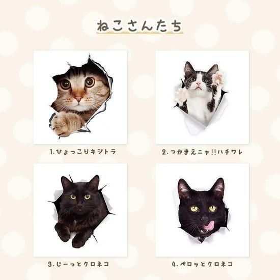 かわいい猫ちゃんが、まるで車から飛び出してきたようなリアルな立体感!思わず二度見してしまうユニークな3Dステッカーです。車用品としてはもちろん、インテリア雑貨としても愛猫家・ねこ好きの方々から大好評!
