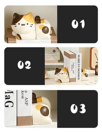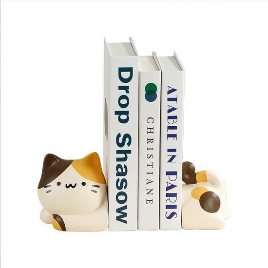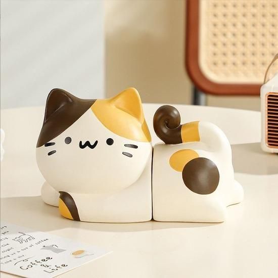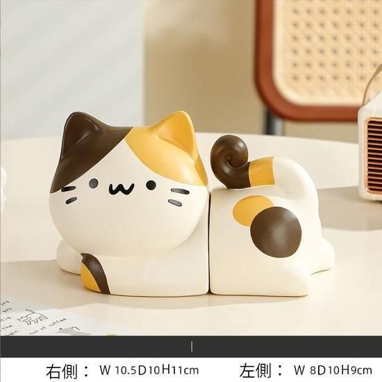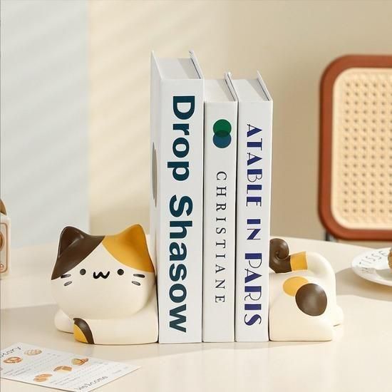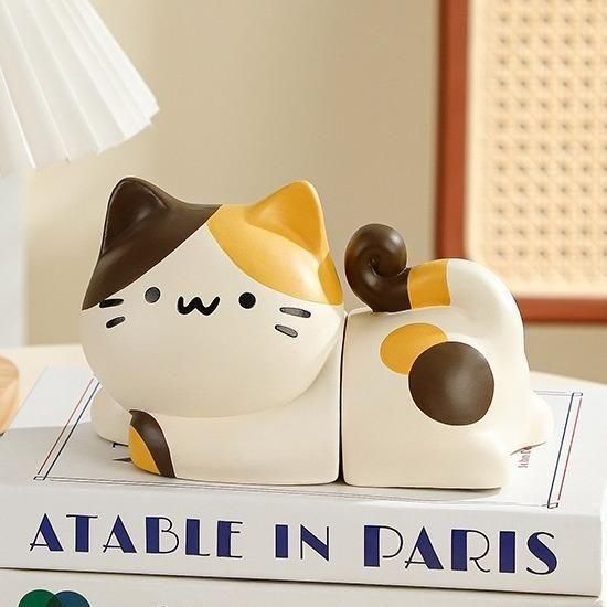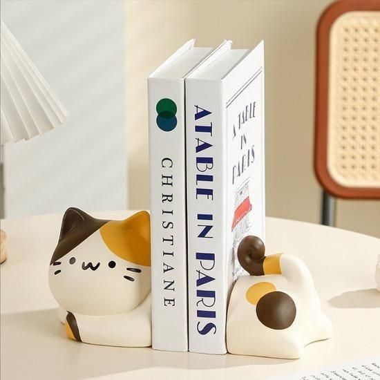 商品名:ブックエンド 三毛猫 猫置物 かわいい オブジェ 本棚装飾 高級感 事務用品 本収納 卓上 本たて